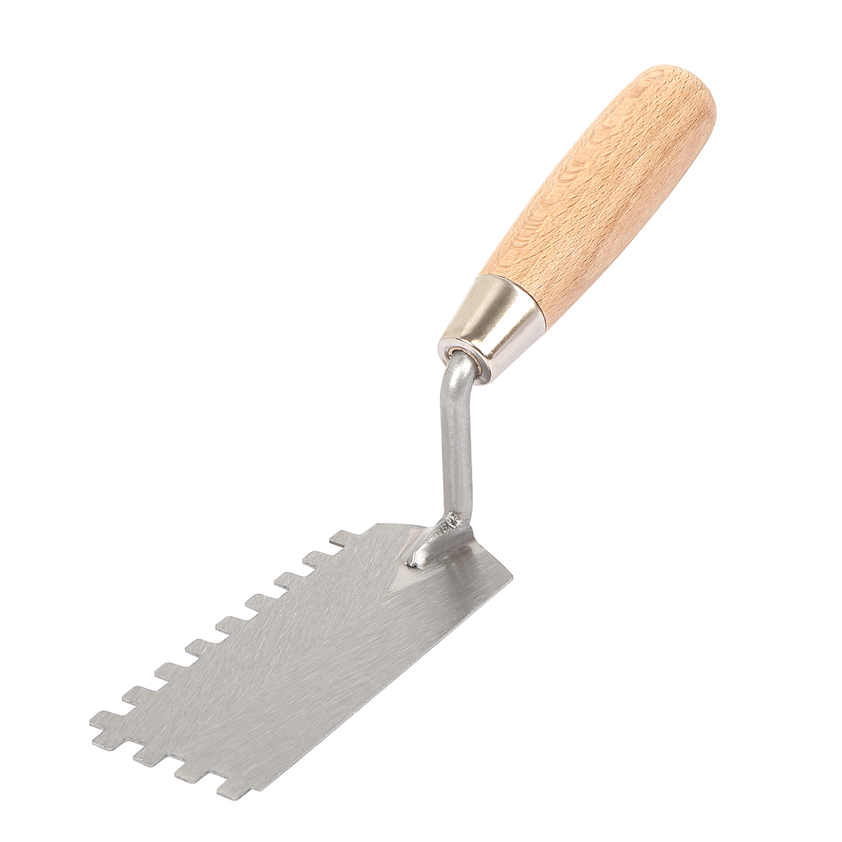 High grade tool steel blade is heat treated and tempered for patch job; hard-to-reach areas and spreading thinset.