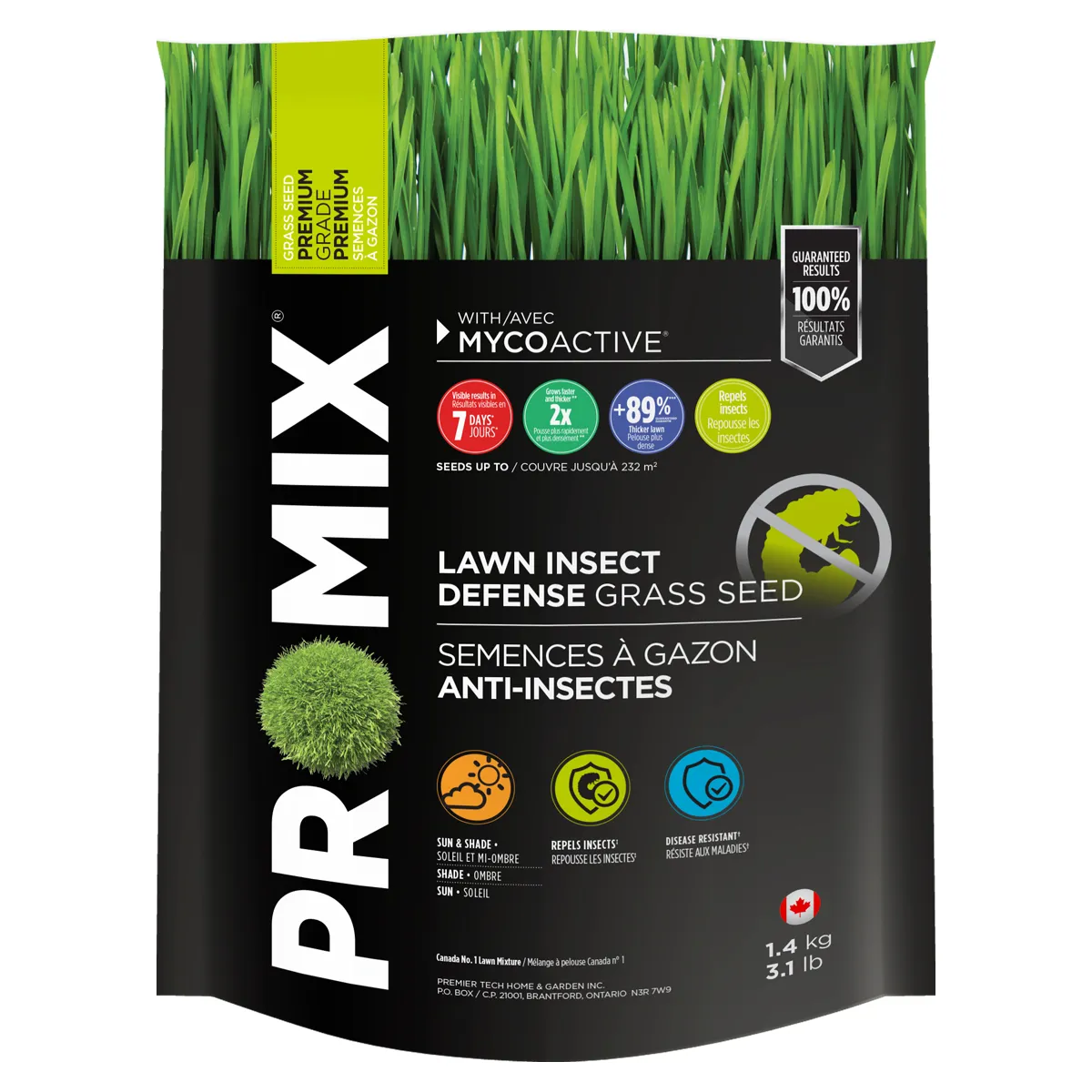PRO-MIX Lawn Insect Defense Grass Seed with the MYCOACTIVE technology has been developed to repel lawn pests and insects in a natural way. It is the first endophyte-rich seed mix in Canada to repel by its unpleasant taste; creating a natural barrier. For a pest.