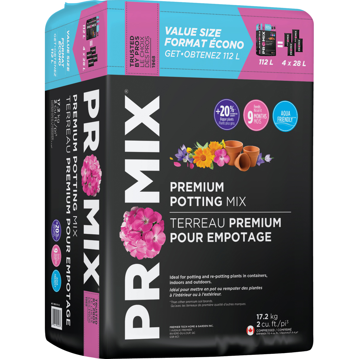 Premier Tech’s peat moss comes from bogs that are certified under the Veriflora Program. This certification ensures the application of good management principles in all aspects of sustainable development. The criteria include environmental assessment; social engagement and product quality. Ready-to-use; this peat-based PRO-MIX Premium Potting Mix is perfect for all indoor and outdoor container planting.