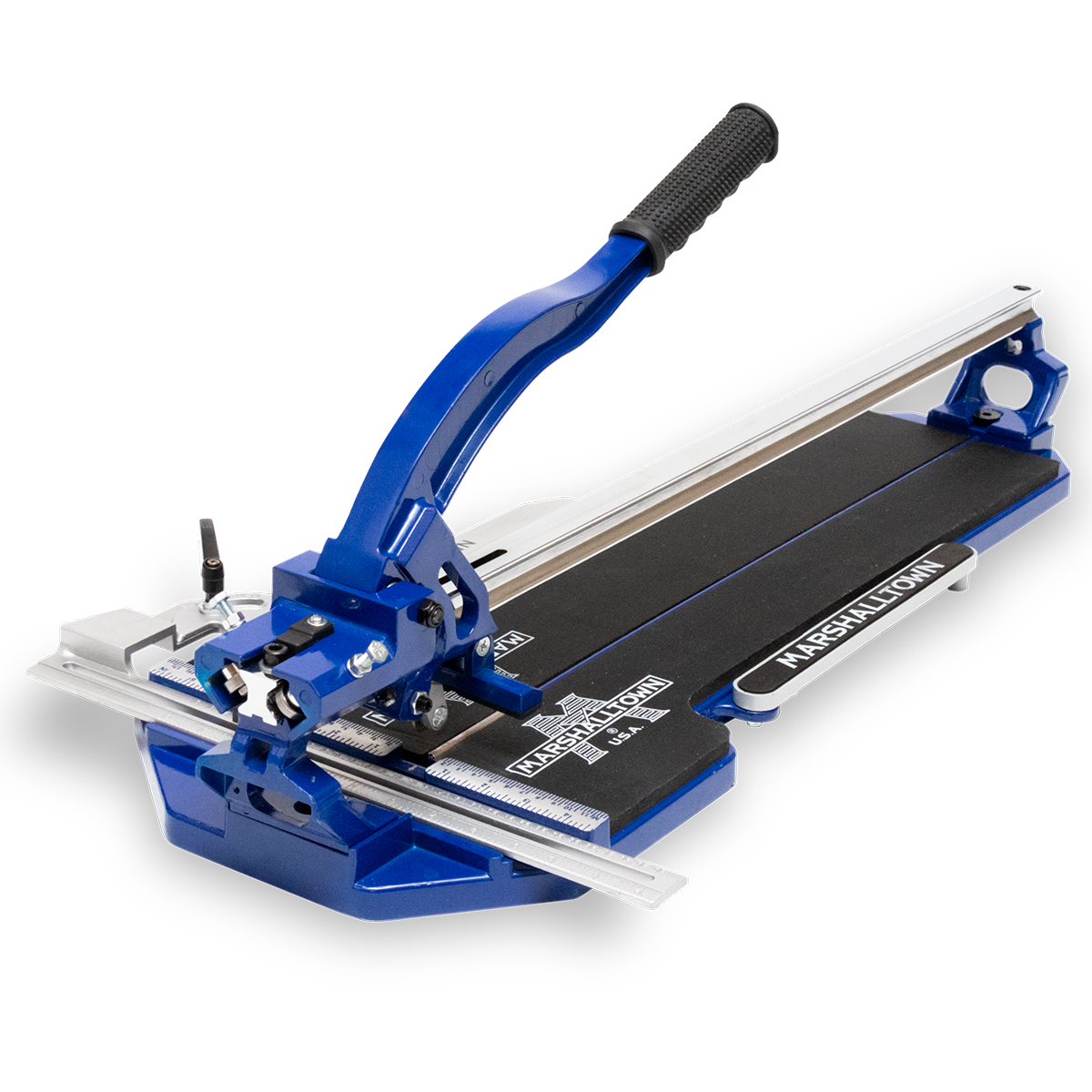 The MARSHALLTOWN Pro Tile Cutter is a versatile professional-grade Tile Cutter for ceramic; porcelain; and mosaic tile up to 24-¾in (630 mm) long. Its titanium-coated tungsten carbide scoring wheel is height adjustable so you can cut tile up to 5/8in (16 mm) thick. This professional tiling tool also has a rigid steel monorail sliding system and a Protractor Gauge so you can make more precise angled or straight cuts; even when scoring hard porcelain.