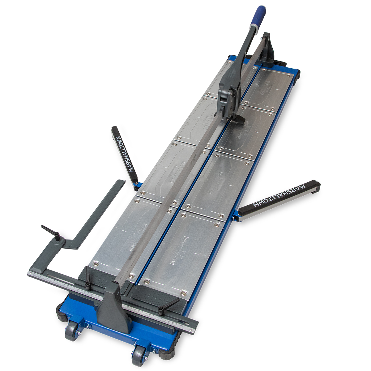 The MARSHALLTOWN 48in Pro Tile Cutter is the best tile cutter option for professionals looking for a long-lasting tiling tool for quick and easy cutting of ceramic; porcelain; and mosaic tile. This versatile cutter can cut tile up to 48in long and ?in (16 mm) thick. Its spring-loaded support bed and dual extension arms are ideal for holding heavy tiles in place while you use the rigid rectangular beam system for smooth; accurate cuts; even when scoring hard porcelain. The ?in (22 mm) tungsten carbide scoring wheel and built-in fence guide also ensure every cut is precise to your measurements.