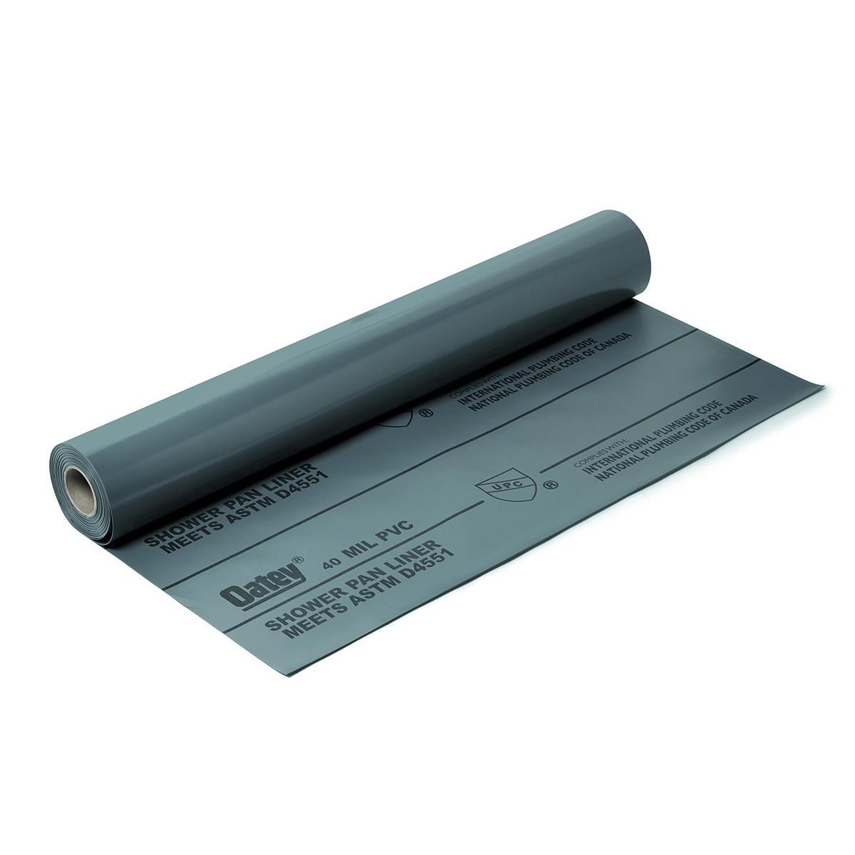 Oatey PVC shower pan liner is an economical; flexible liner designed for use in tile showers and other concealed waterproofing applications. It's made of 40 mil thick; flexible PVC sheet and marked in 6 in. increments for easy of measuring. Oatey products have earned the trust of plumbing professionals for over 100 years.