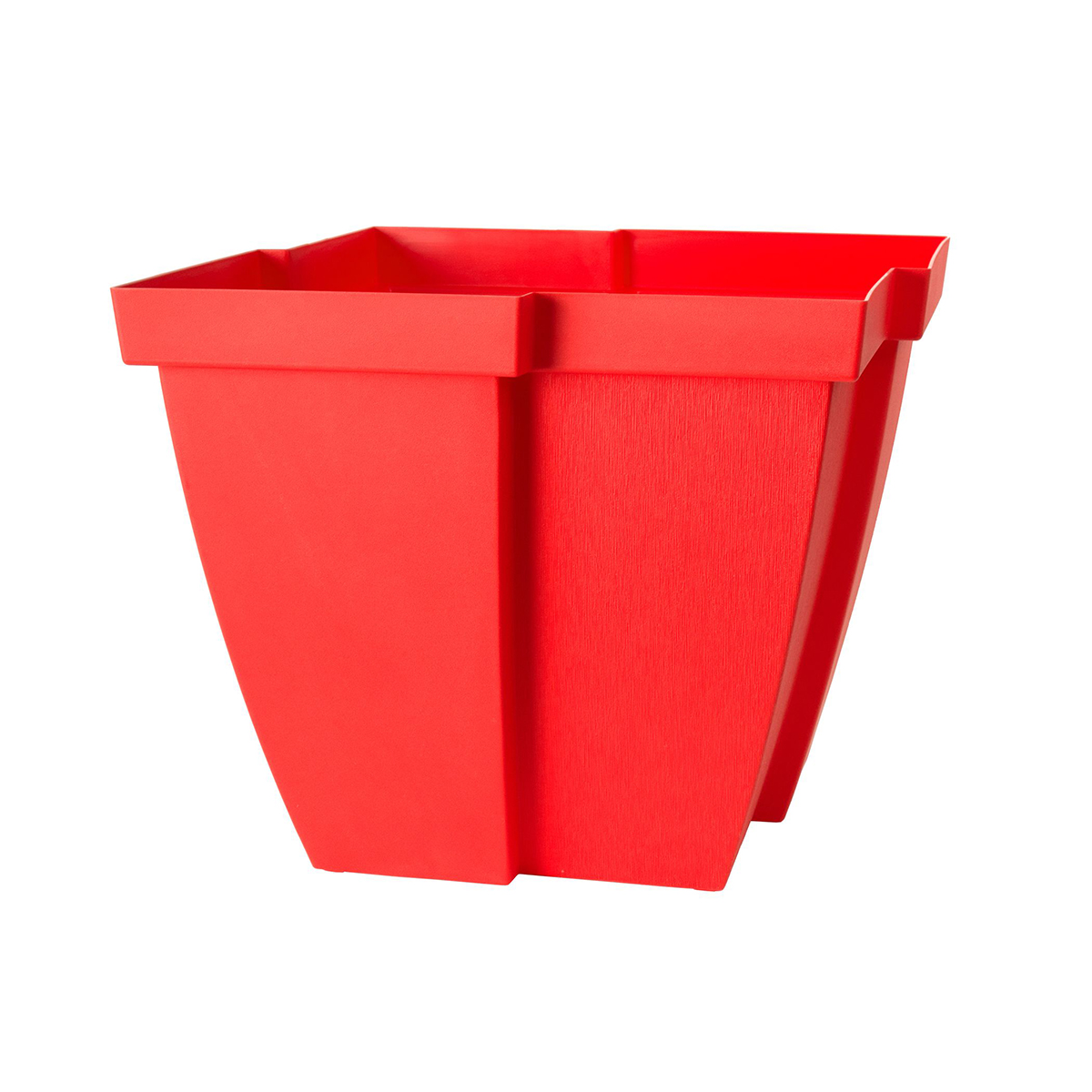 Quattro Contemporary Planter Plastic Square 15.5x15.5x13.25in Red