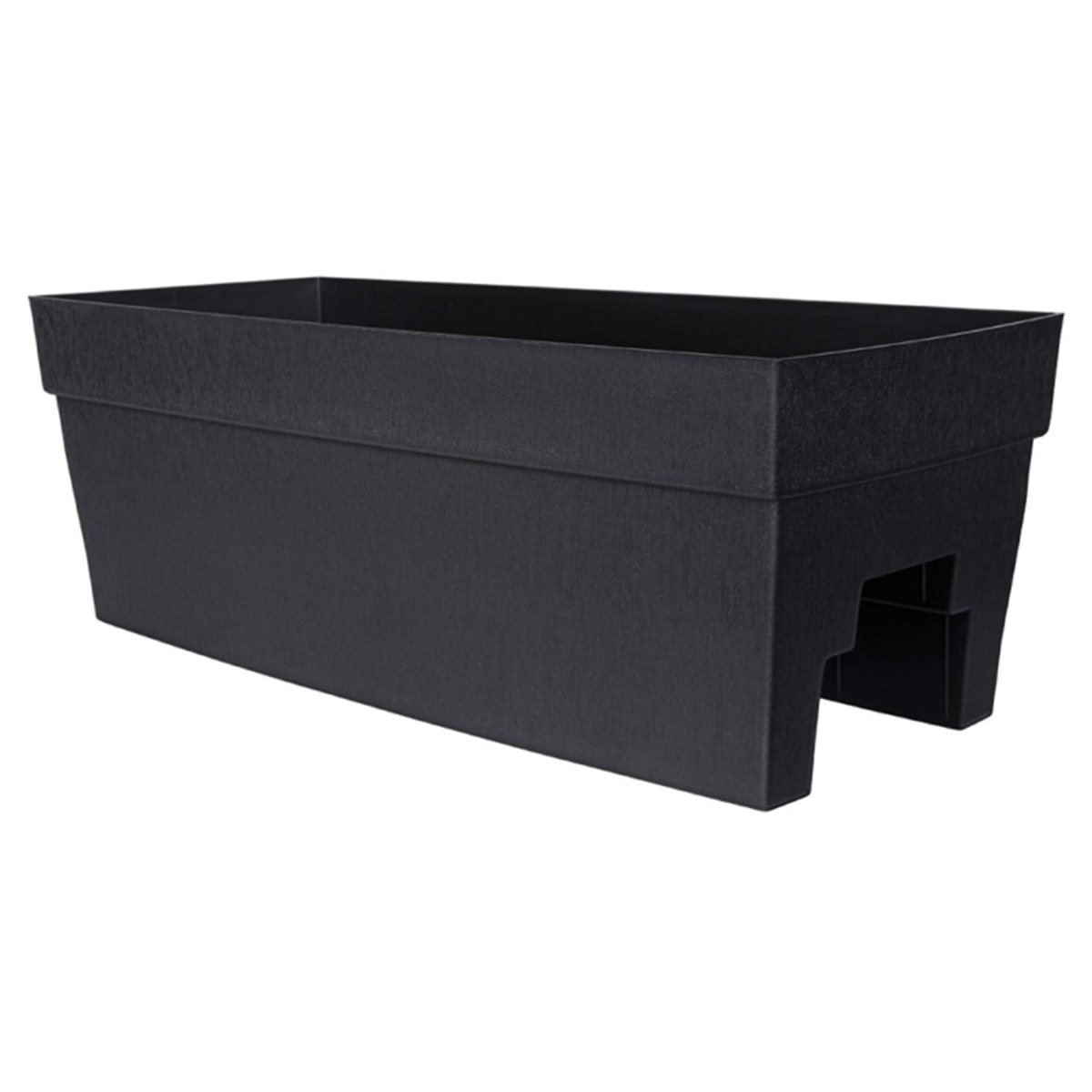 Start the growing season off right with a spacious new container garden. Wide rectangular planter made from plastic with a handsome textured finish. Self-watering design features a reservoir and overflow protection so your plants stay properly hydrated. Suitable for use as a deck rail planter or a freestanding container. Fits both 2 x 4 inch and 2 x 6 inch deck railings.