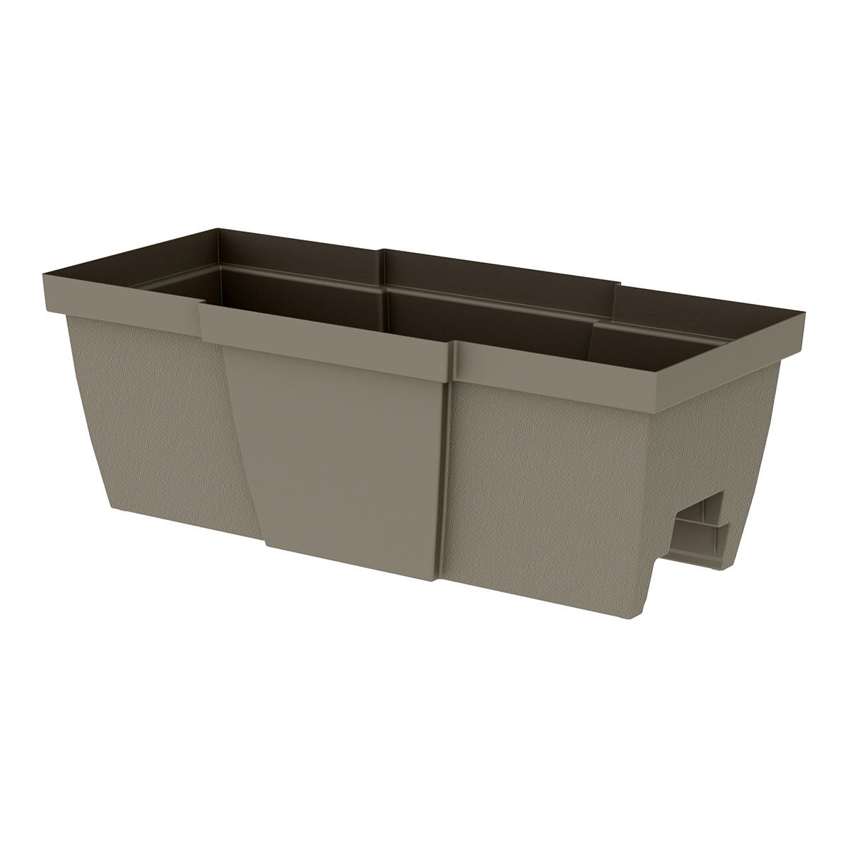 Start the growing season off right with a spacious new container garden. Wide rectangular planter made from plastic with a handsome textured finish. Self-watering design features a reservoir and overflow protection so your plants stay properly hydrated. Suitable for use as a deck rail planter or a freestanding container. Fits both 2 x 4 inch and 2 x 6 inch deck railings.