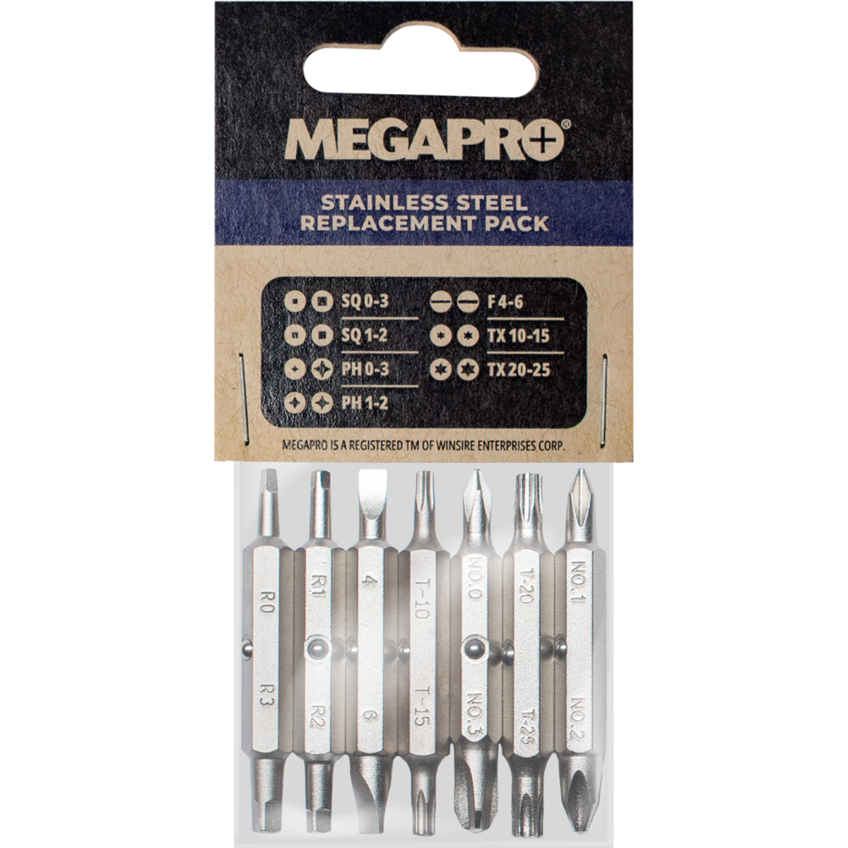 Replacement Bit set includes: Square (Robertson) Bit 0-3 ENP | Square (Robertson) Bit 1-2 ENP | Phillips Bit 0-3 ENP | Phillips Bit 1-2 ENP | Flat (Slot) Bit 4-6 ENP | Star (Torx) Bit 10-15 ENP | Star (Torx) Bit 20-25 ENP.