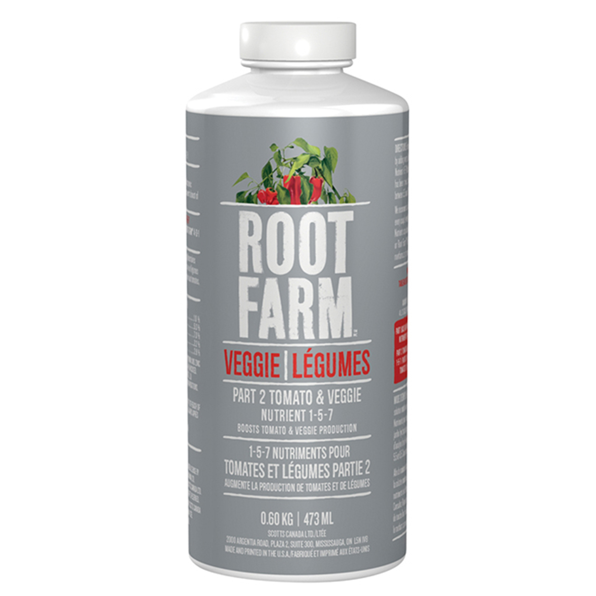 Ideal for growing tomatoes; peppers; cucumbers and more; root farm part 2 tomatoes & veggie nutrient 1-5-7 delivers a boost of phosphorus and potassium to support flower and fruit development.