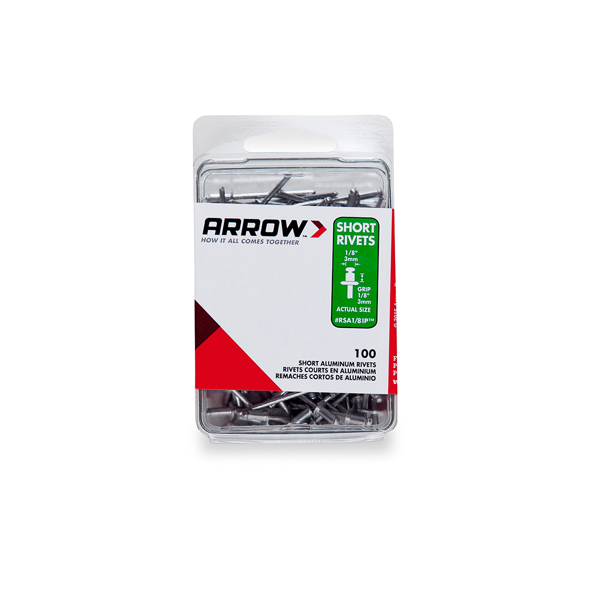 Rivets aluminum industrial pak; 1/8 inch diameter; 1/8 inch grip range; box of 100 Use steel rivets for very heavy duty jobs and when riveting steel to steel. Use aluminum rivets for lighter weight jobs and materials such as aluminum; fabrics; plastics; leather; etc. Use washers when joining soft materials or when existing hole is oversize. Use steel rivets for very heavy-duty jobs and when riveting steel to steel.