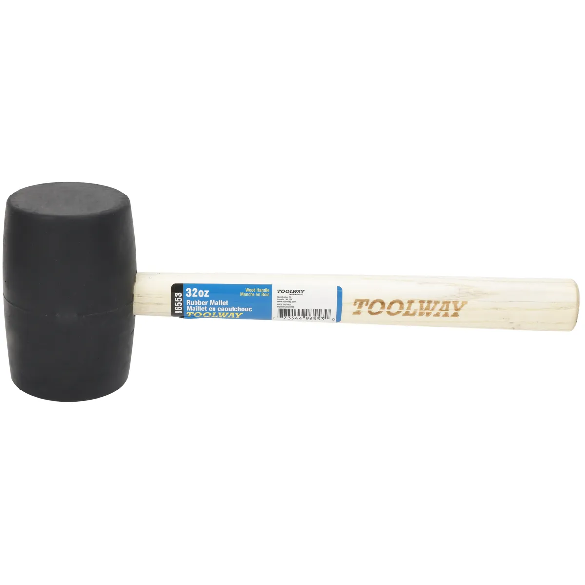 The Tooltech Workbench 32 oz black rubber mallet. Made of rubber. This mallet is perfect for construction; woodworking; and auto body repair. It features a rubber head and a wood handle. Rubber head won't marring surfaces.
