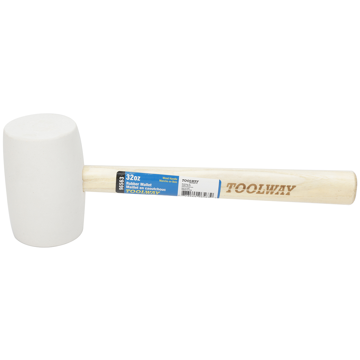 The Tooltech Workbench 32 oz black rubber mallet. Made of rubber. This mallet is perfect for construction; woodworking; and auto body repair. It features a rubber head and a wood handle. Rubber head won't marring surfaces.