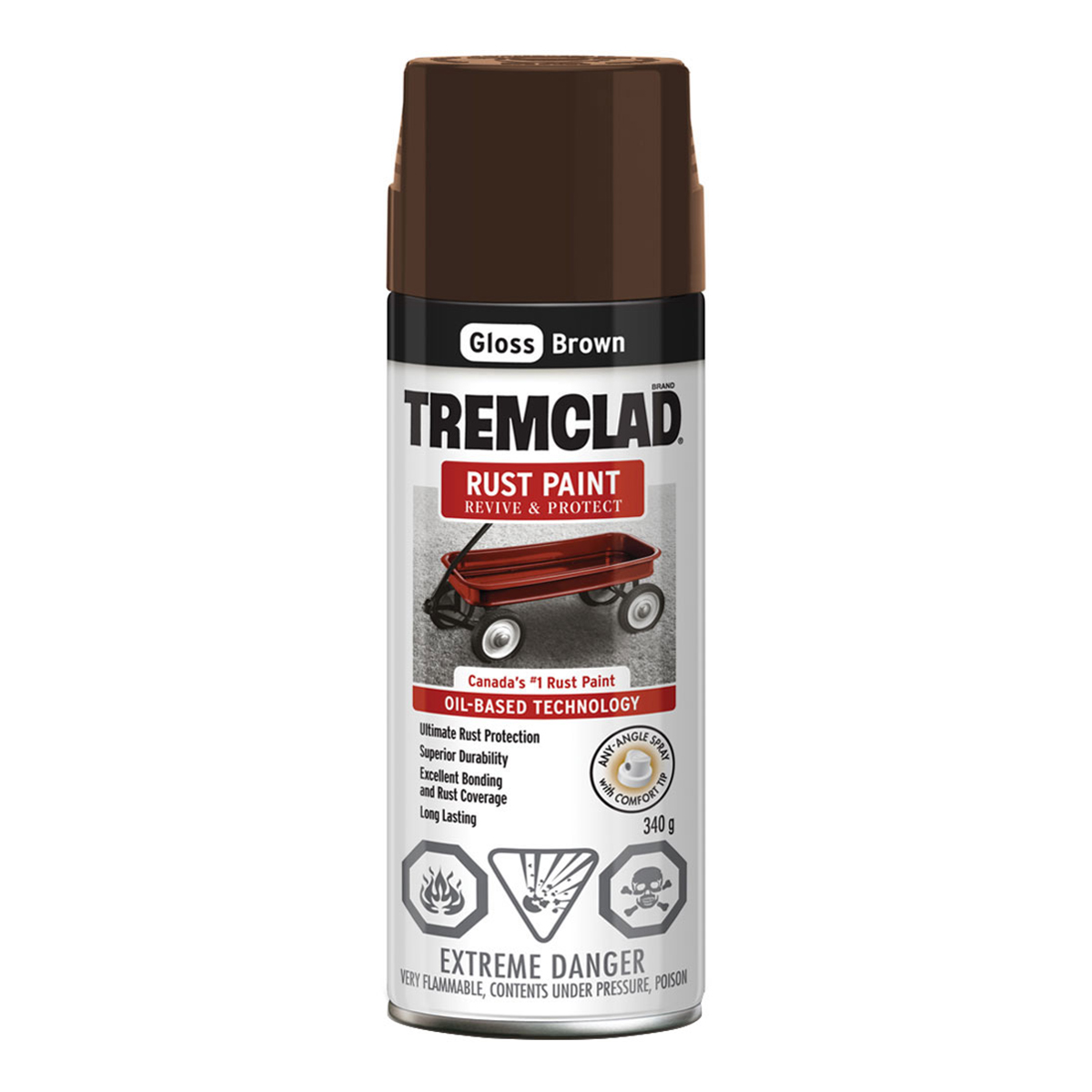 TREMCLAD® oil-based rust paint spray offers superior rust inhibition and is specially formulated to penetrate rust and bind to metal. Comfort spray tip with a wide finger pad prevents finger fatigue while providing excellent spray control. Any angle spray feature even sprays upside down for hard to reach areas.