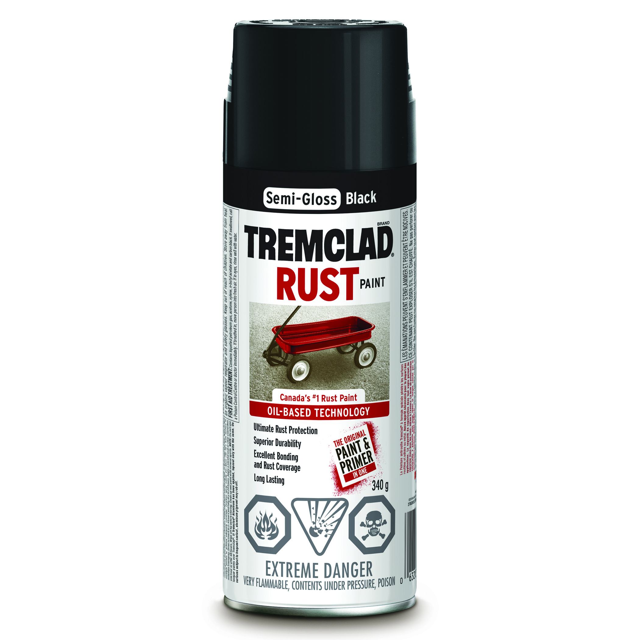 TREMCLAD® Oil-Based Rust Paint Spray offers superior rust inhibition and is specially formulated to penetrate rust and bind to metal. Comfort spray tip with a wide finger pad prevents finger fatigue while providing excellent spray control. Any-angle spray feature even sprays upside down for hard-to-reach areas.