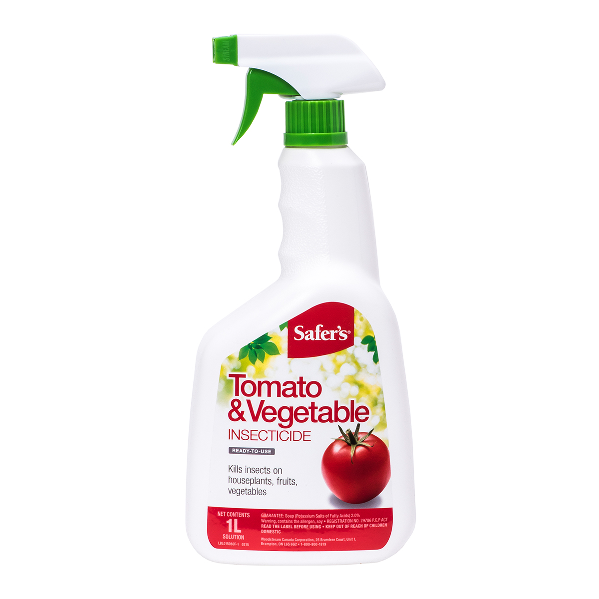 Safer’s Tomato & Vegetable Insect Killer utilizes the power of potassium salts of fatty acids (insecticidal soap). The potassium salts weaken the insect’s waxy protective outer shell. This results in dehydration, which causes them to die. Unlike traditional synthetic chemicals, it breaks down into its natural elements, leaving no residual impact on the environment. One application lasts up to 10 days, and the product can be applied up until the day of harvest.