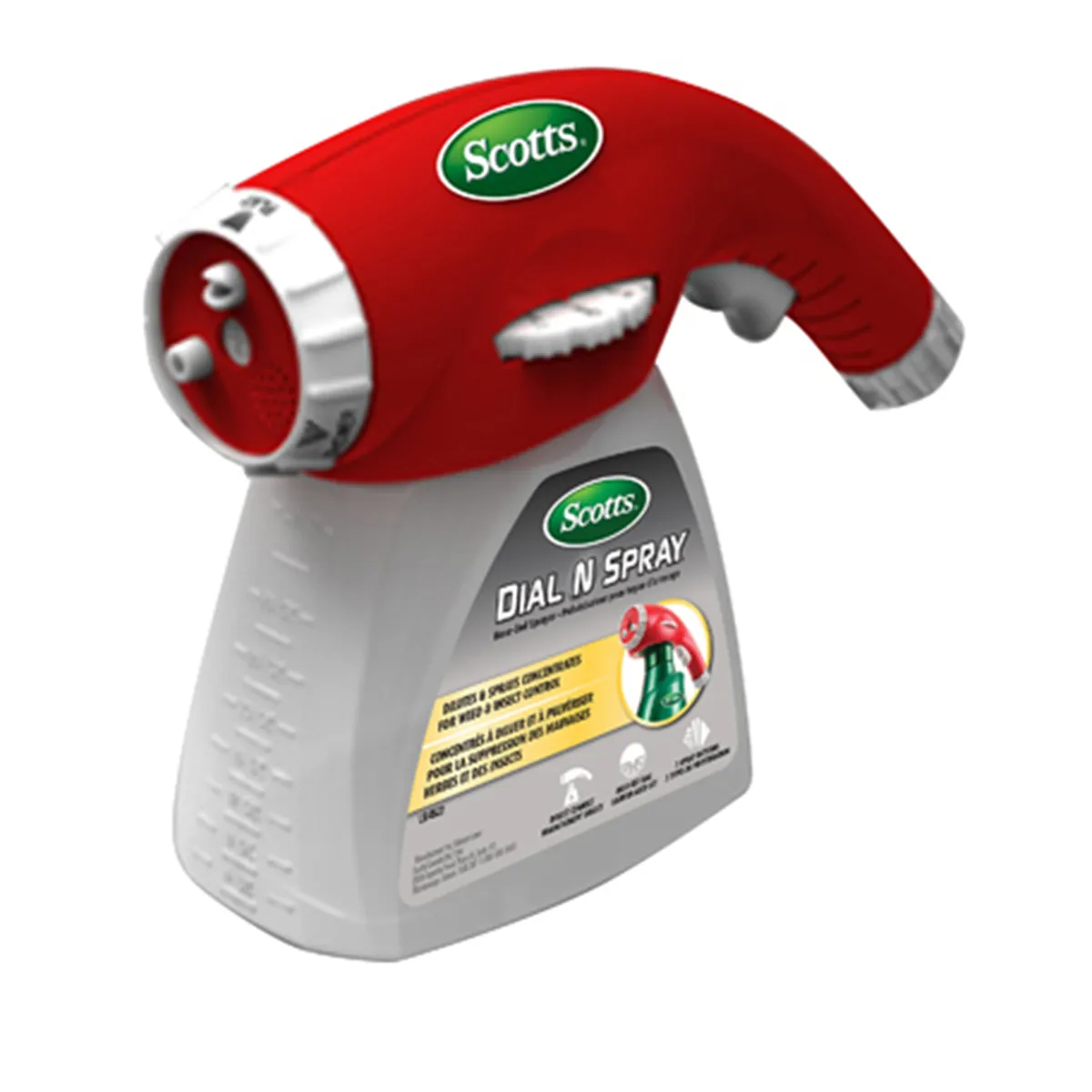 The Ortho® Dial N Spray® Hose End Sprayer makes it easy to apply Ortho® liquid weed killers; insect killers; and fungicides. There's no mixing or measuring needed; so there's no mess.Simply pour the product into the jar; choose your desired setting and spray pattern; connect the hose and you're off! It has 14 built-in dilution settings to automatically mix the product with water so you can trust that you are providing the precise amount of treatment every time. There are also three spray patterns so you can deliver the product in the most efficient and effective way possible. Use the Broadcast pattern for large; open areas; the Jet spray for high; hard-to-reach places (up to 25 ft. away); and the Shower setting to provide a gentle shower that's perfect for flowers and vegetation. While using the Ortho® Dial N Spray® Hose End Sprayer; the extended-grip handle keeps your hands dry and the ergonomically designed trigger makes it easy on your grip.