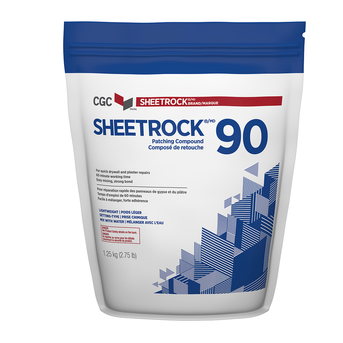 CGC Sheetrock® Brand 90 Setting-Type Drywall Compound is an excellent compound for embedding tape; bead and trims. It's special formulation provides a lightweight product that has a superior bond; permits same-day joint finishing and is easy to handle and sand. It is ideal for heavy fills and is virtually unaffected by humidity.