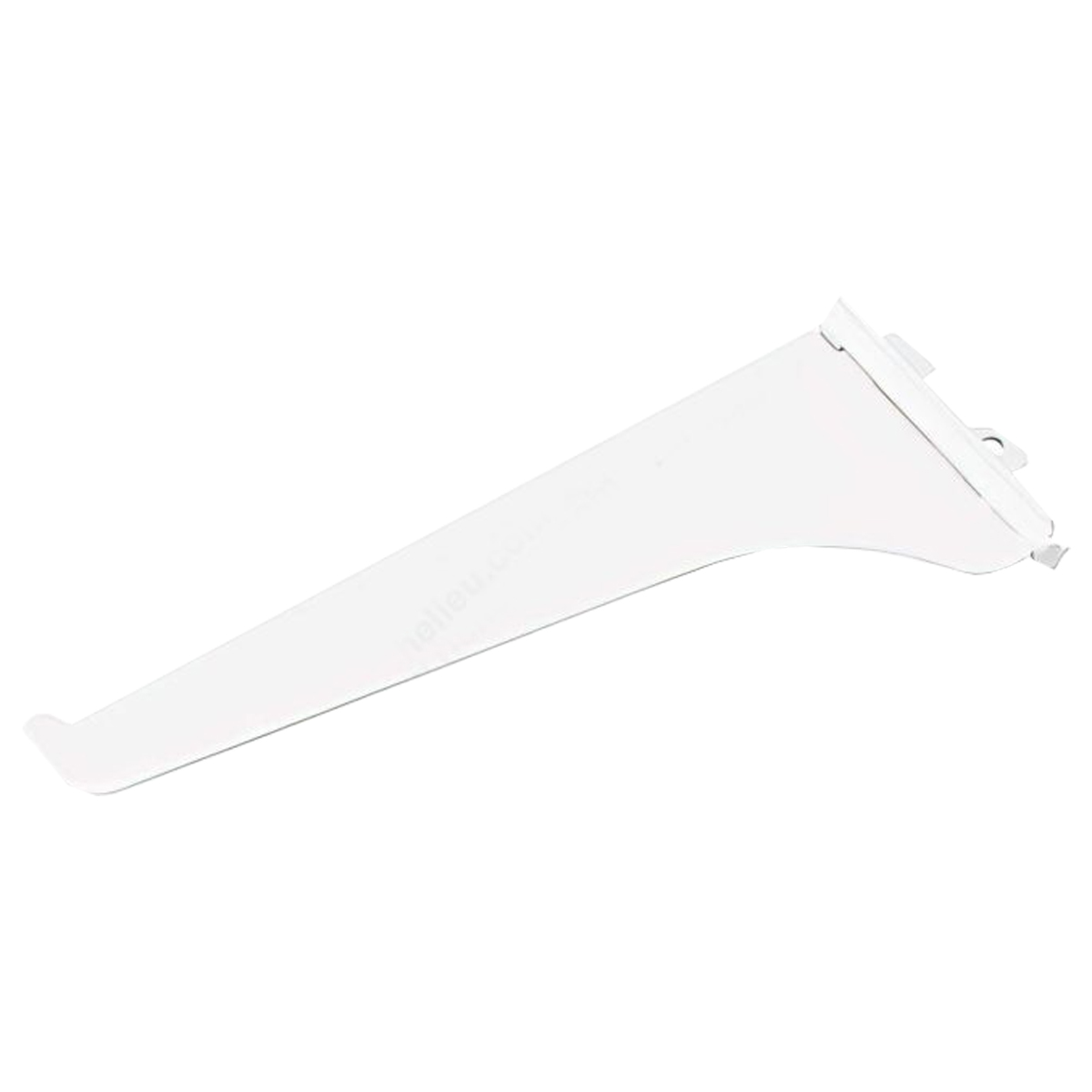 This bracket features a shelf retaining lip and a spring clip for stability and friction lock. Two locking teeth easily lock into wall standard. For use with the 80 Series standards. White finish.