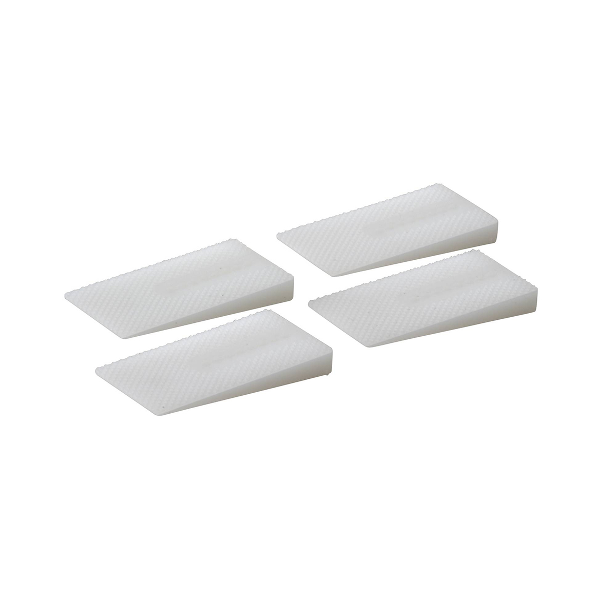 Toilet bowl shims. Helps stabilize wobbly toilets. Includes four plastic shims. Durable plastic construction.
