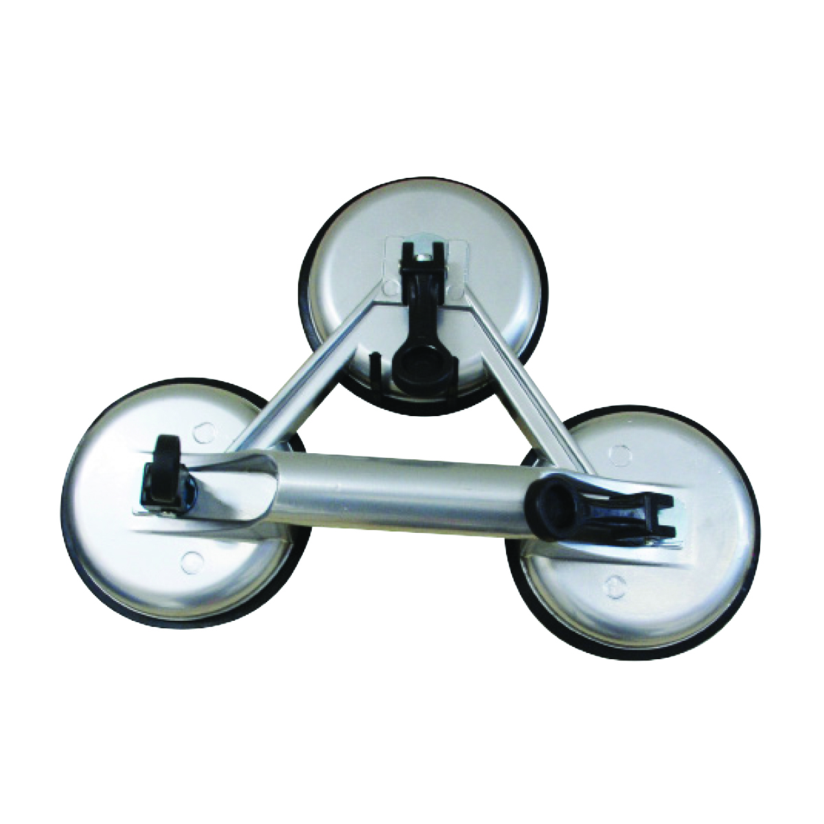 Assists in the lifting and positioning of large format tiles. The three suction cups create a strong bond to a variety of materials quickly and securely. Unit is designed with an impact resistant aluminum alloy body and is rated to 280kg.