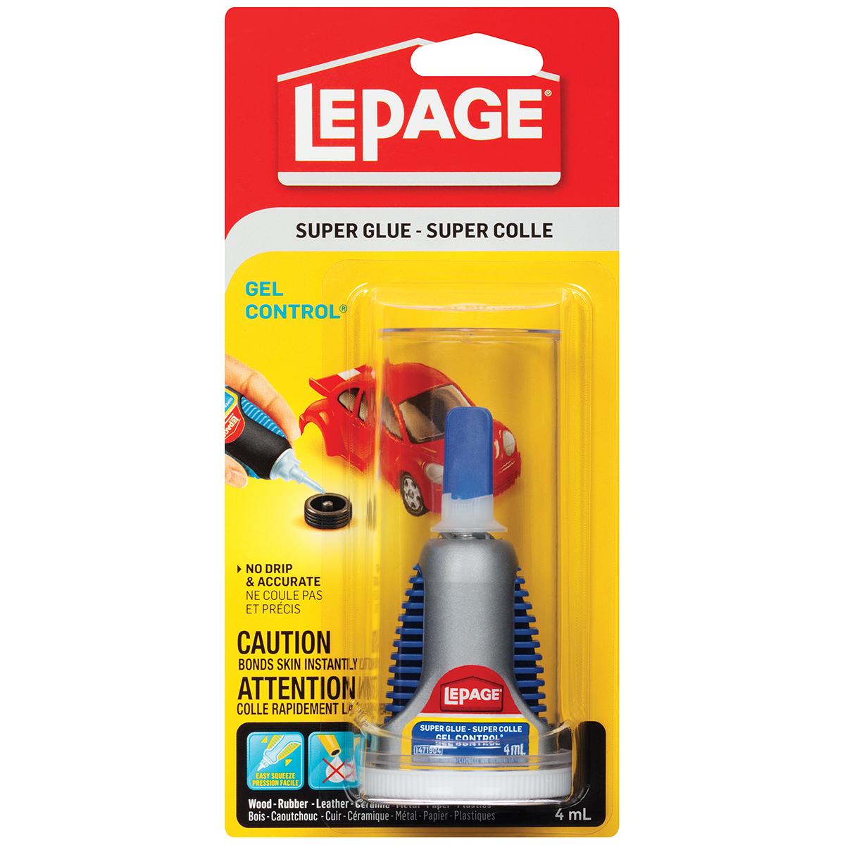 LePage Super Glue Gel Control has demonstrated superior performance over regular super glues. Its final set is superior on more surfaces than ordinary instant adhesives thanks to a patented additive. Ideal for repairing figurines; costume jewelry; cameras; toys; metal car parts; wiper blades; rubber seals and O-rings.