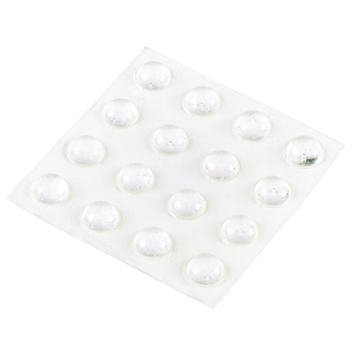 - Pack of 16 clear vinyl 3/8 inch bumper pads with self adhesive and 1/4 inch height.