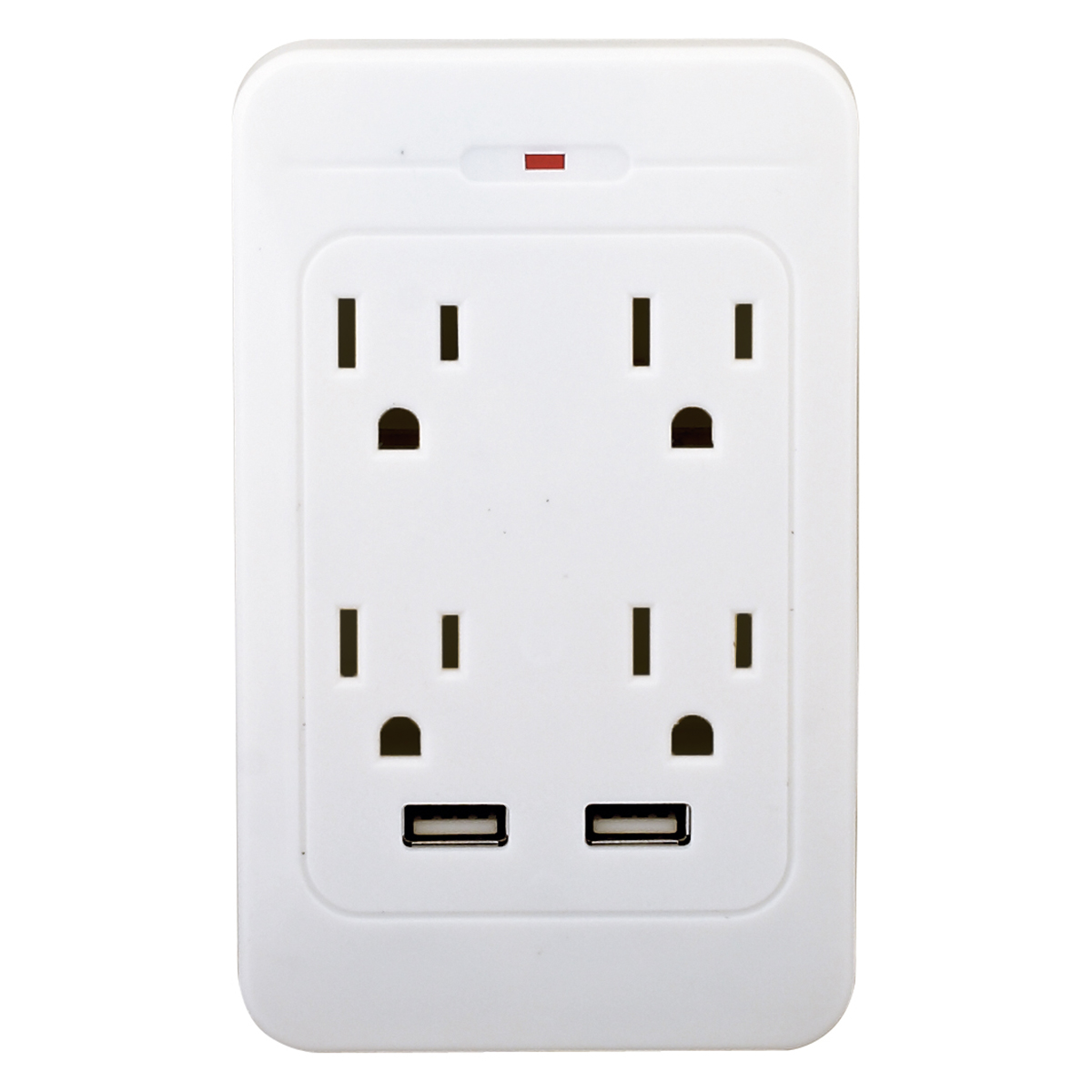 Surge Protector Grounded Wall Adapter 2-USB/4-Outlet White