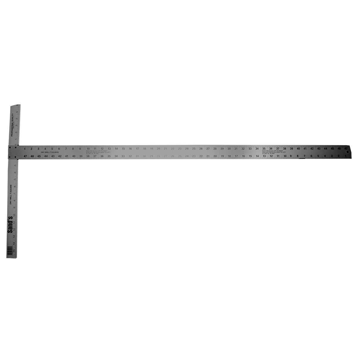 This 48in T-Square is made from anodized extruded Aluminum to protect the blade. Long-wearing black markings are easy to read. The reverse ruled body is easy to read from either direction. The 2in wide blade of the T-Square features 1/8in graduations for precision. The 16in arm and markings at 16 in on blade makes it easy to locate studs. Notched head has a lip that rests on the edge of wallboard and drywall to easily mark for cuts. Four rivets connect the tongue and body for rugged durability and strength. Hang hole for easy storage. Must order in quantities of 6; priced per each.