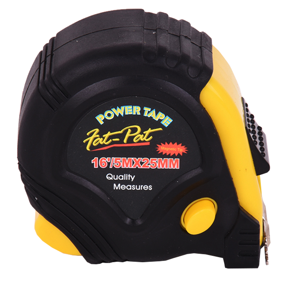 This Tape Measure is an essential tool for the home or job site. It has a 1in nylon coated blade which allows for a quick and stable roll-up and increased durability; a magnetic tip reinforced with three rivets; a rubber bumper and a fingertip quick locking mechanism. Measurements are displayed in imperial and metric for your convenience.