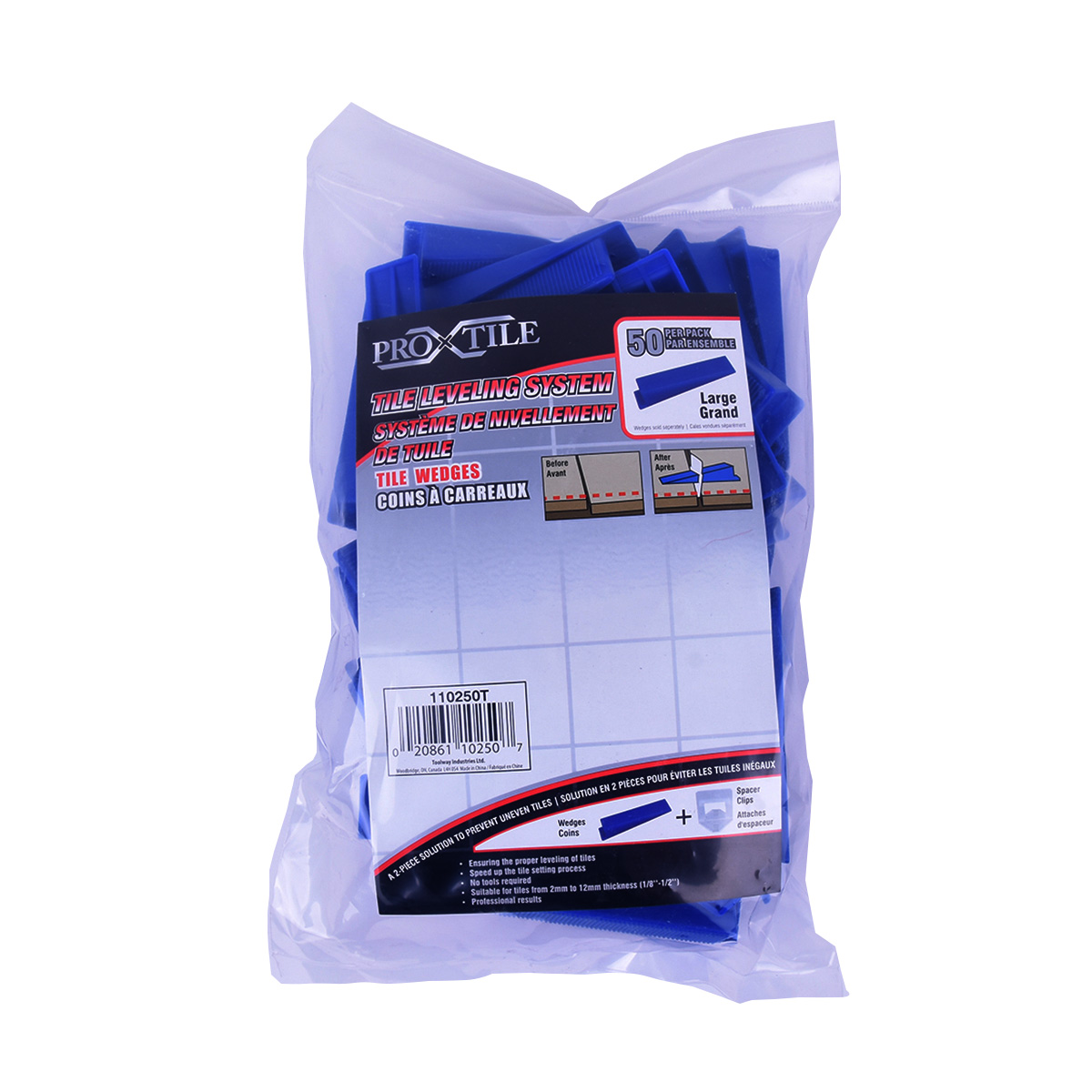 Save a great deal of time and money during your next tile installation with the ProXTile® Levelling System. These clips and wedges are the best solution for eliminating tile lippage in all floor or wall tile projects. When used with ProXTile’s tile Levelling floor pliers and Levelling clips; this system prevents tiles from moving or warping during the curing process ensuring incredible looking results every time. Whether you are a professional installer or a DIYer; this system will increase the time it takes to complete a project and reduces installer fatigue. Levelling wedges can be removed from the clips when your thin-set mortar or adhesive has fully cured and be used multiple times. The clip’s easy snap-off design allows you to quickly break them off making your tiles ready for grouting in seconds.