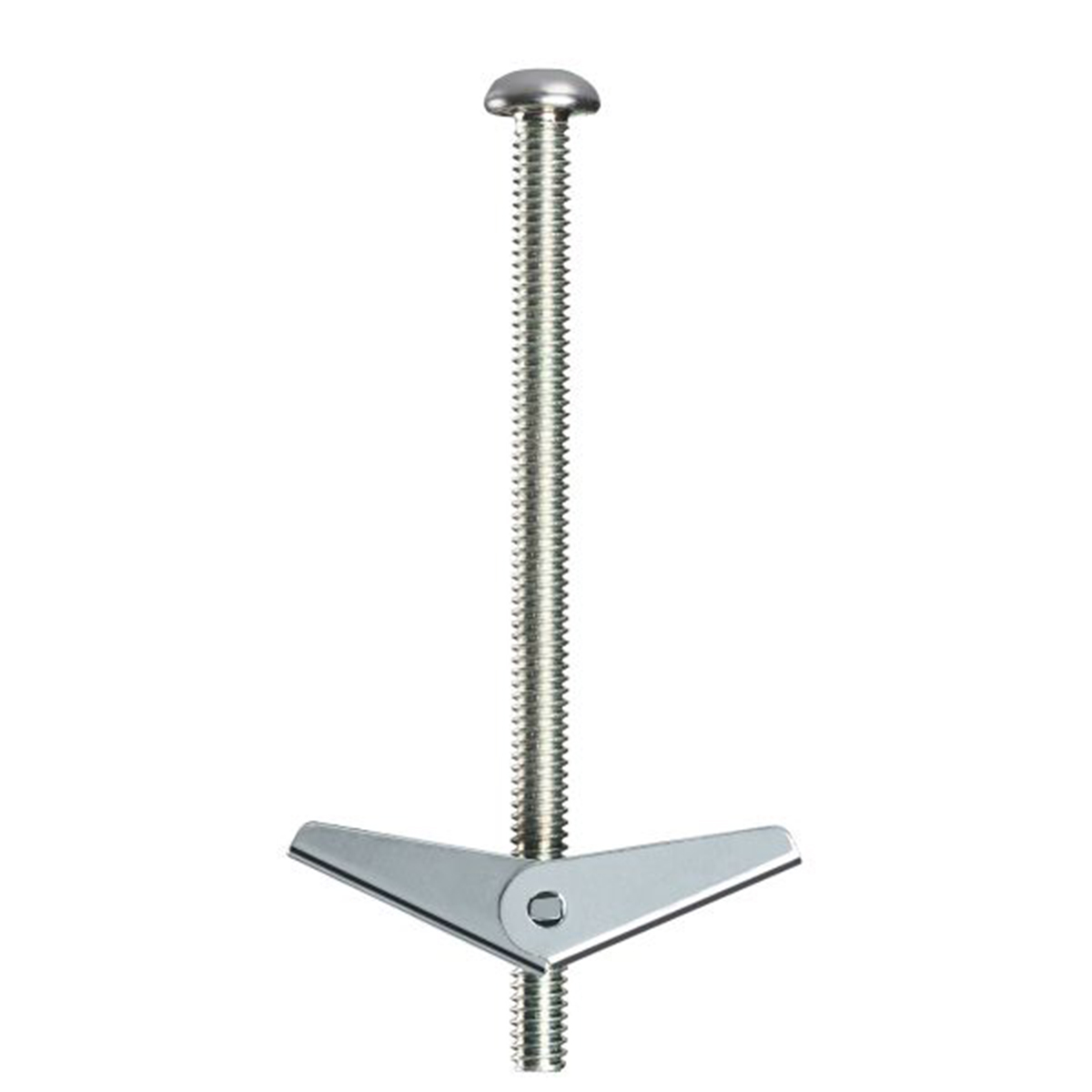 The Spring toggle bolt is a kind of toggle anchor made of steel and is very suitable for fixing heavy objects to the wall or ceiling. In addition; by being provided in various lengths; it is applicable to a thicker target material. The two metal wings are spring-loaded and unfold from behind the wall after the anchor is inserted. On the other hand; if you want faster and easier installation; you can use Driller Toggle anchor instead. The Spring toggle bolt is a regular toggle anchor made of steel. Two head styles are available: round and button head. A Spring toggle bolt is great for ceilings and comes in a variety of lengths for thicker material.