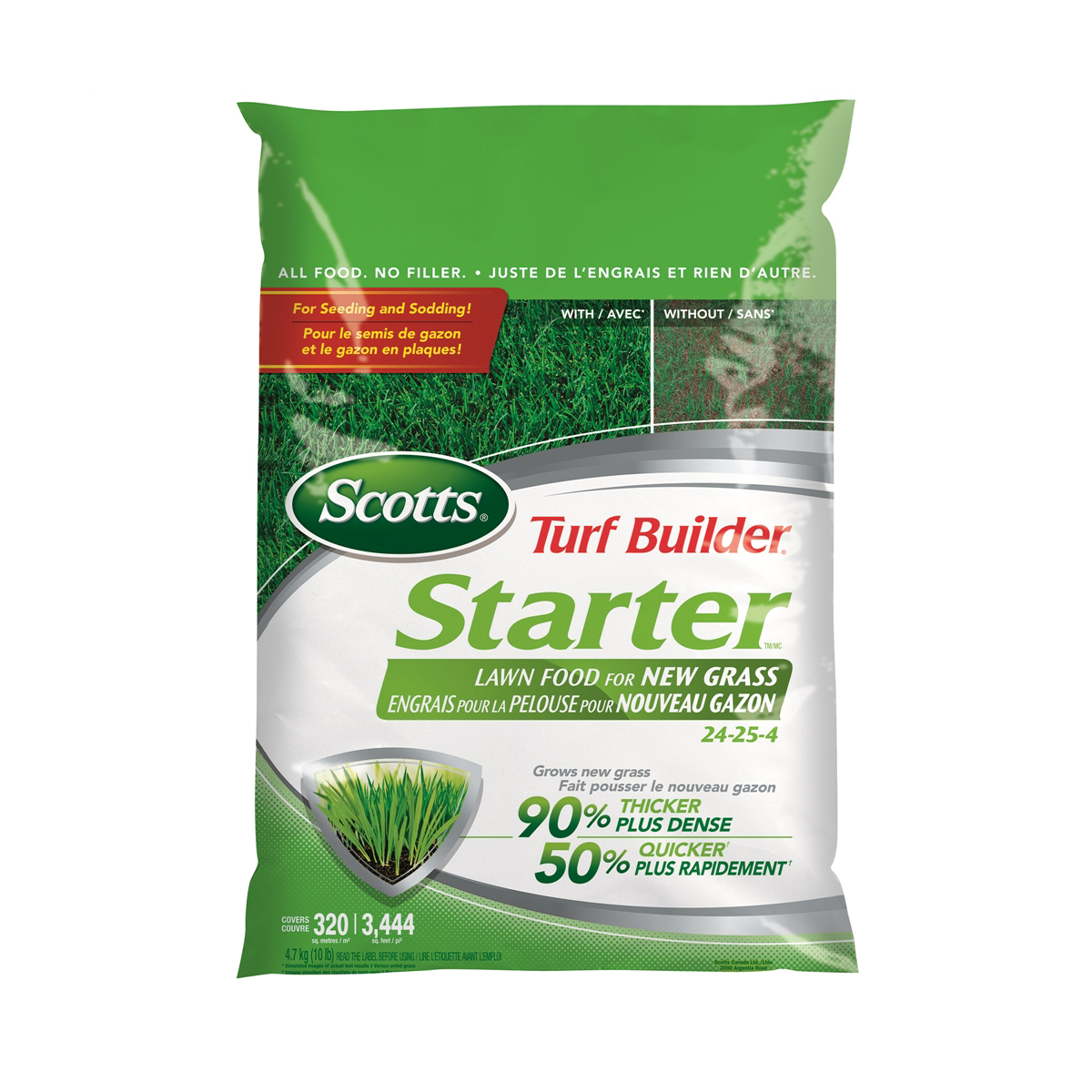 Quickly nurture a newly seeded or sodden lawn with Scotts Turf Builder starter lawn food for new grass 24-25-4. Its high phosphorus content promotes the strong root system needed for a thick and healthy established lawn. This product can also be used for over-seeding existing lawns.