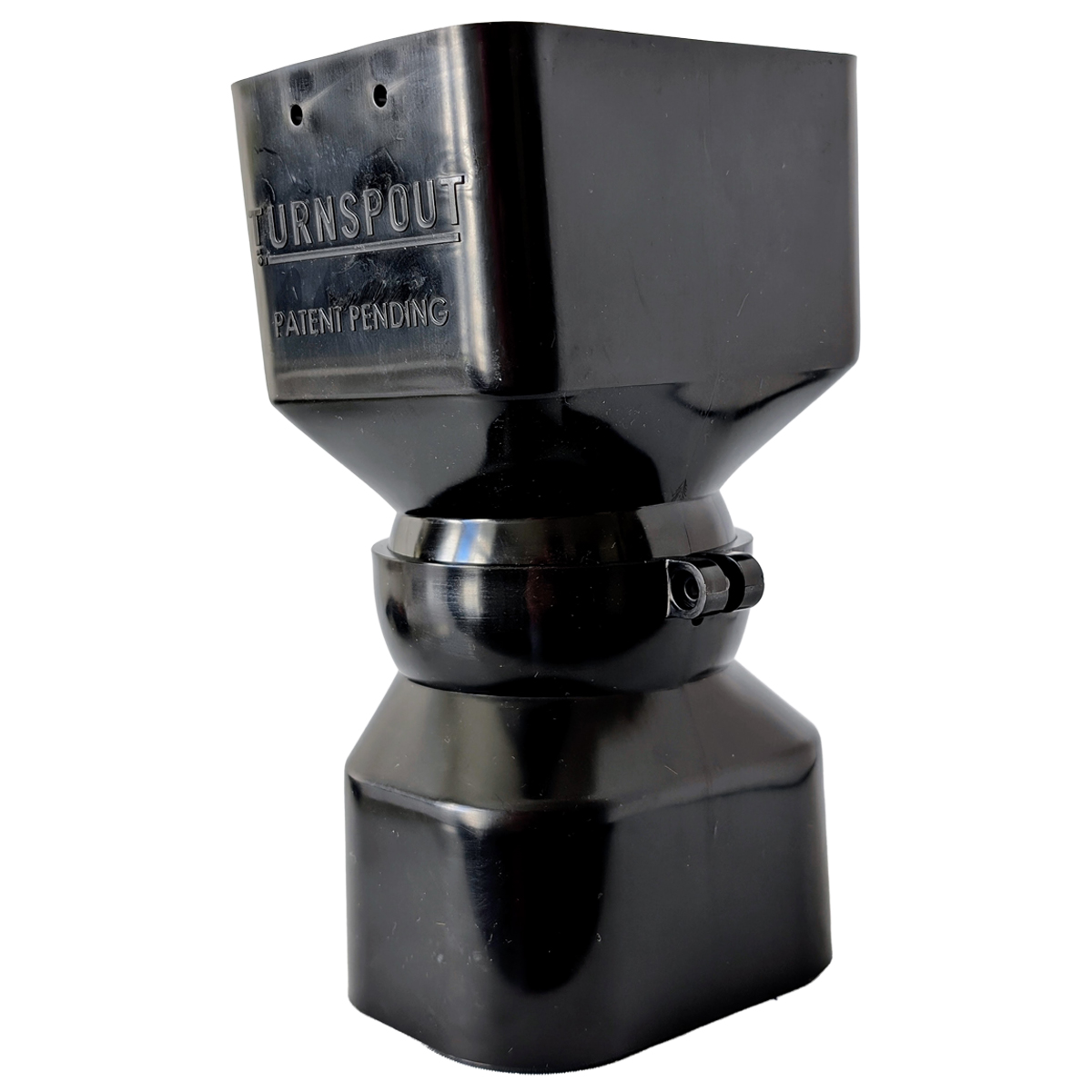 Never let a downspout get in the way again with the TurnSpout; the directional downspout connector. Made of high-density polyethylene for years of service. Easy to install in minutes. The adjustable and lockable elbow joint rotates 360 degrees and lifts or lowers up to 25 degrees; eliminating the inconveneince of having to stop and remove the downspout. Garden work is made easier and managing the direction of drainage water is greatly simplified. TurnSpout provides a game-changing solution for managing water drainage around homes; buildings and properties; a necessity today with the heightened concern over flooding and drainage. Invented and made in Canada.