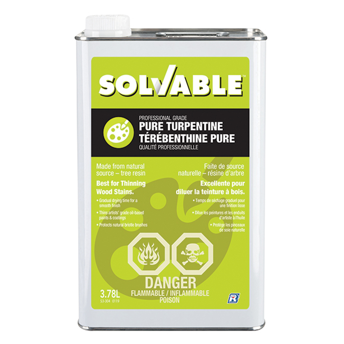 Solvable professional grade pure turpentine is excellent for thinning and cleaning oil-based paints varnishes wood stains and enamels.