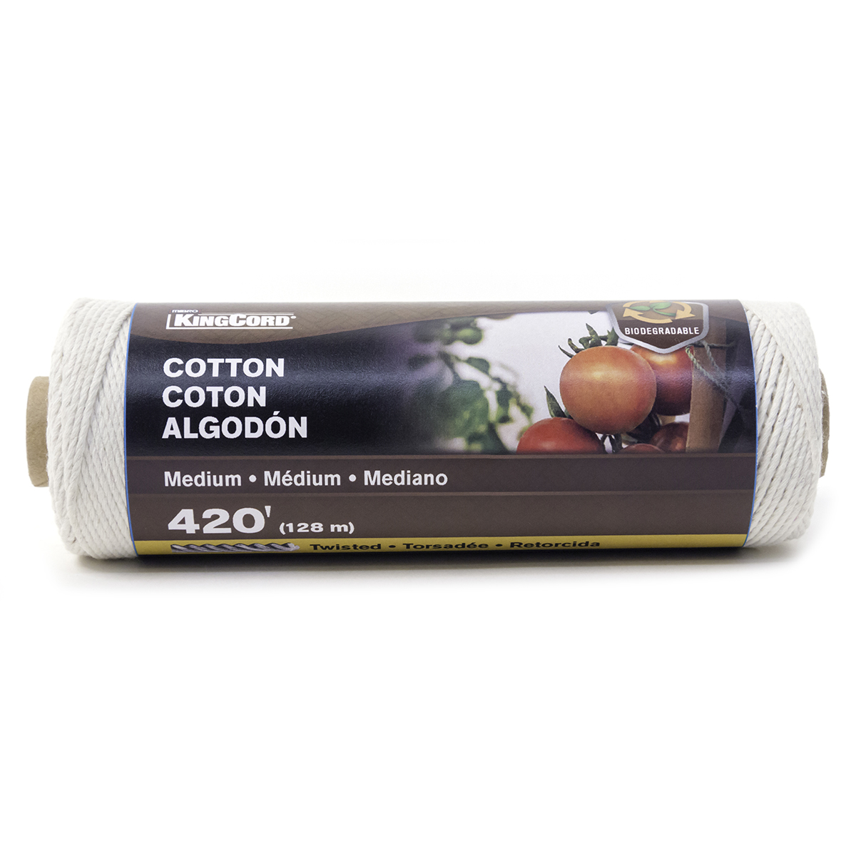 Due in part to its light strength characteristics; cotton is an excellent choice for a wide variety of common household uses; including in the kitchen; the garden; for blinds; crafts; or for bundling packages.