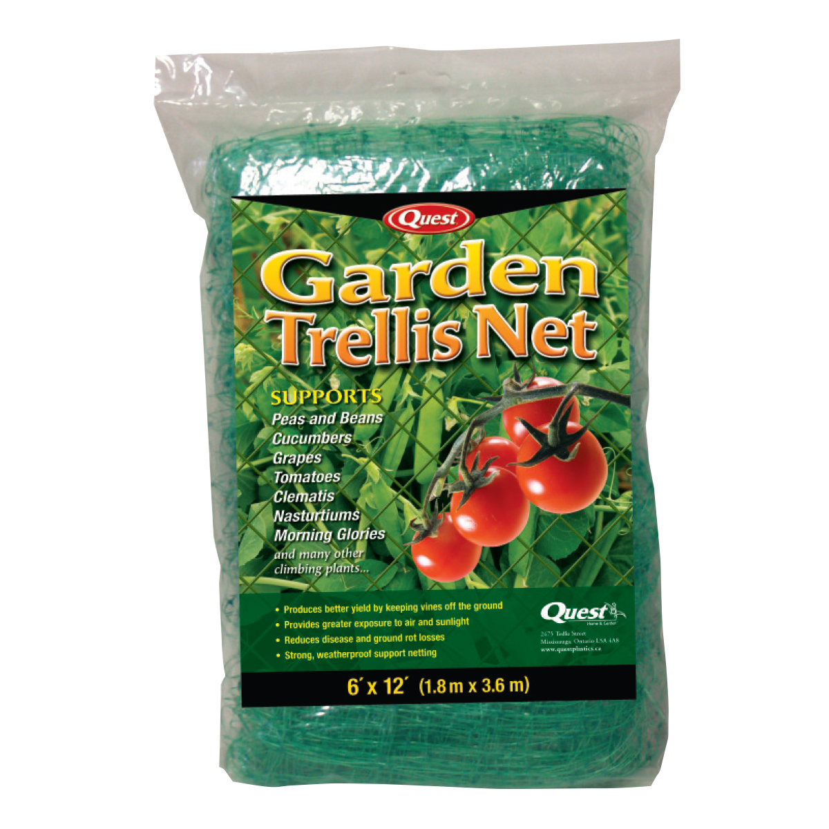 Produces better yield by keeping vines off the ground. Ideal for vegetables; fruits; peas; beans; cucumbers; clematis etc. Polypropylene green mesh.