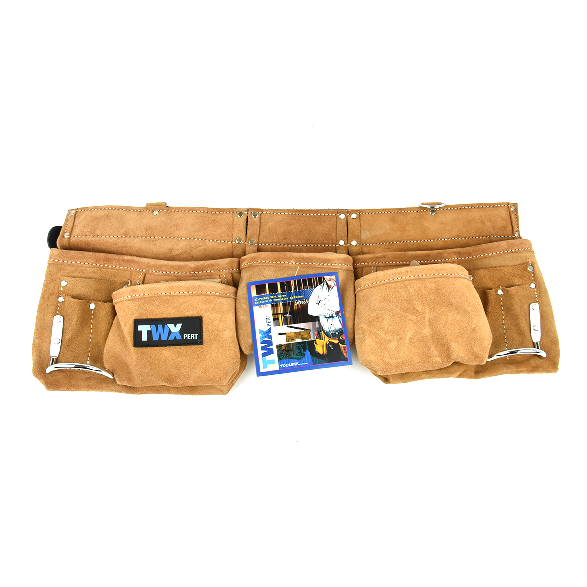Waist Apron Split Leather 12-Pocket with 2in Leather Belt Beige