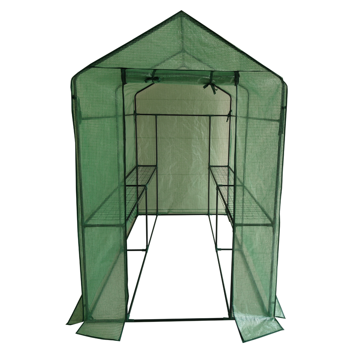This walk-in greenhouse is constructed with a sturdy steel tubular frame for added strength and support yet is still lightweight allowing for better mobility. It is equipped with a tough polyethylene mesh canopy with a roll-up front panel when not required and a double zip-up door allowing for easy access. Ideal for starting seedlings and protecting young plants.
