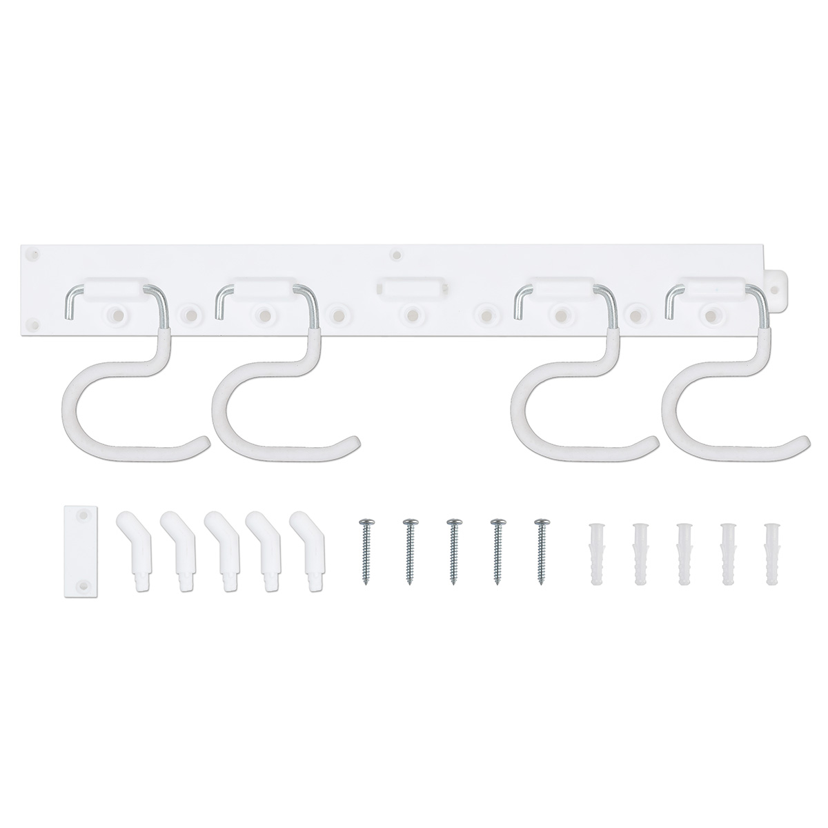 Adjustable storage rack that can be mounted to solid or hollow doors and walls. Perfect for the kitchen; the laundry room; kids room; etc. All mounting hardware included. Lifetime warranty (normal use).