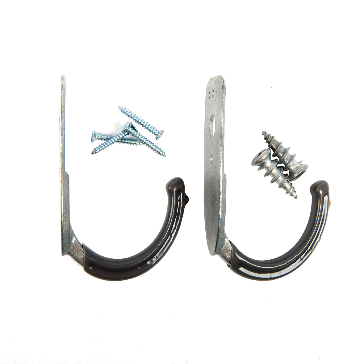 Ideal for hanging hoses; sport accessories; tires; lawn chairs; garden tools and accessories. Rust resistant finish. Easily mounts in wood stud and drywall. Mounting hardware included. Supports: Up to 50 lbs.