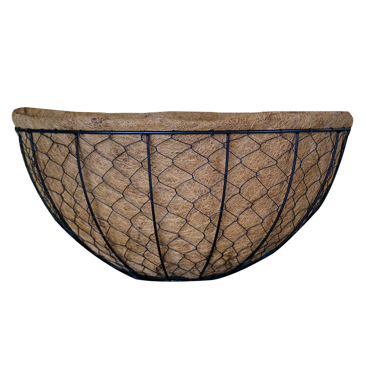 Wallmount Mesh Wire Basket Rounded Bottom with Coco Liner 20in Matte Black