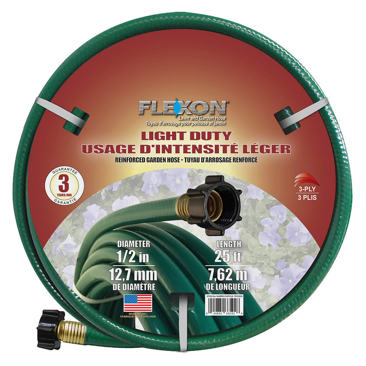Best used for everyday gardening and lawn care; our lightweight hoses are a great value and perfect for people who might have difficulty handling and maneuvering heavier hoses. Radial reinforced and weather resistant vinyl coverings provide easy handling; year-round. These hoses offer easy-to-connect couplings; which make it simple to securely connect and remove from any outdoor faucet or spigot.
