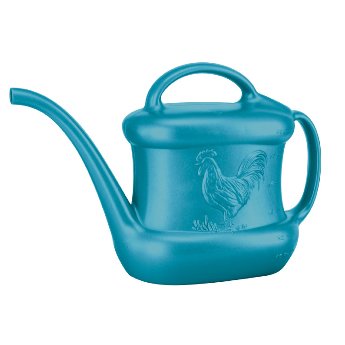 Right away you will notice a beautiful rooster has been embossed into this classic designed watering can. It has an inner water volume scale in both ounces and liters. The handes offer an easy safe grip and it has a capacity of 3 l (102 oz). The long and precise pour spout allows for clean direct watering without spillage. It is available in two fashionable colors to meet most decors but best of all; this watering can is made in Canada using recyclable UV treated raw materials to help resist damage from the sun's harmful rays.
