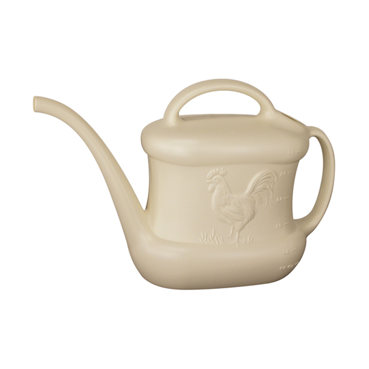 Right away you will notice a beautiful rooster has been embossed into this classic designed watering can. It has an inner water volume scale in both ounces and liters. The handes offer an easy safe grip and it has a capacity of 3 l (102 oz). The long and precise pour spout allows for clean direct watering without spillage. It is available in two fashionable colors to meet most decors but best of all; this watering can is made in Canada using recyclable UV treated raw materials to help resist damage from the sun's harmful rays.