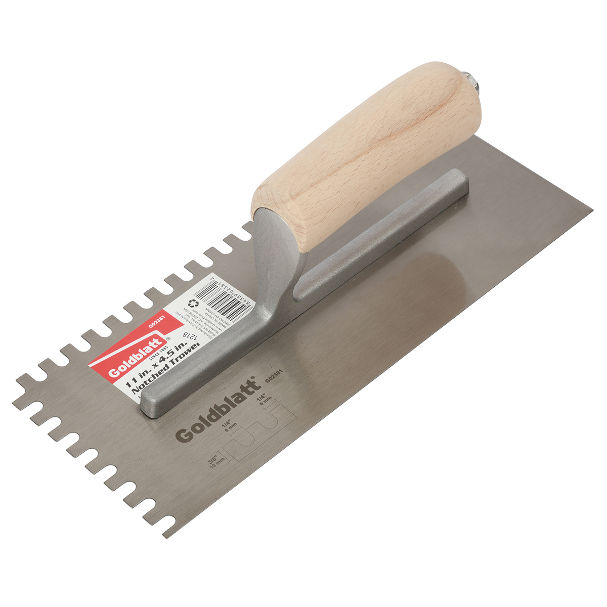 Wood Handle Carbon Steel Notch Trowel 1/4 x 3/8 x 1/4 U