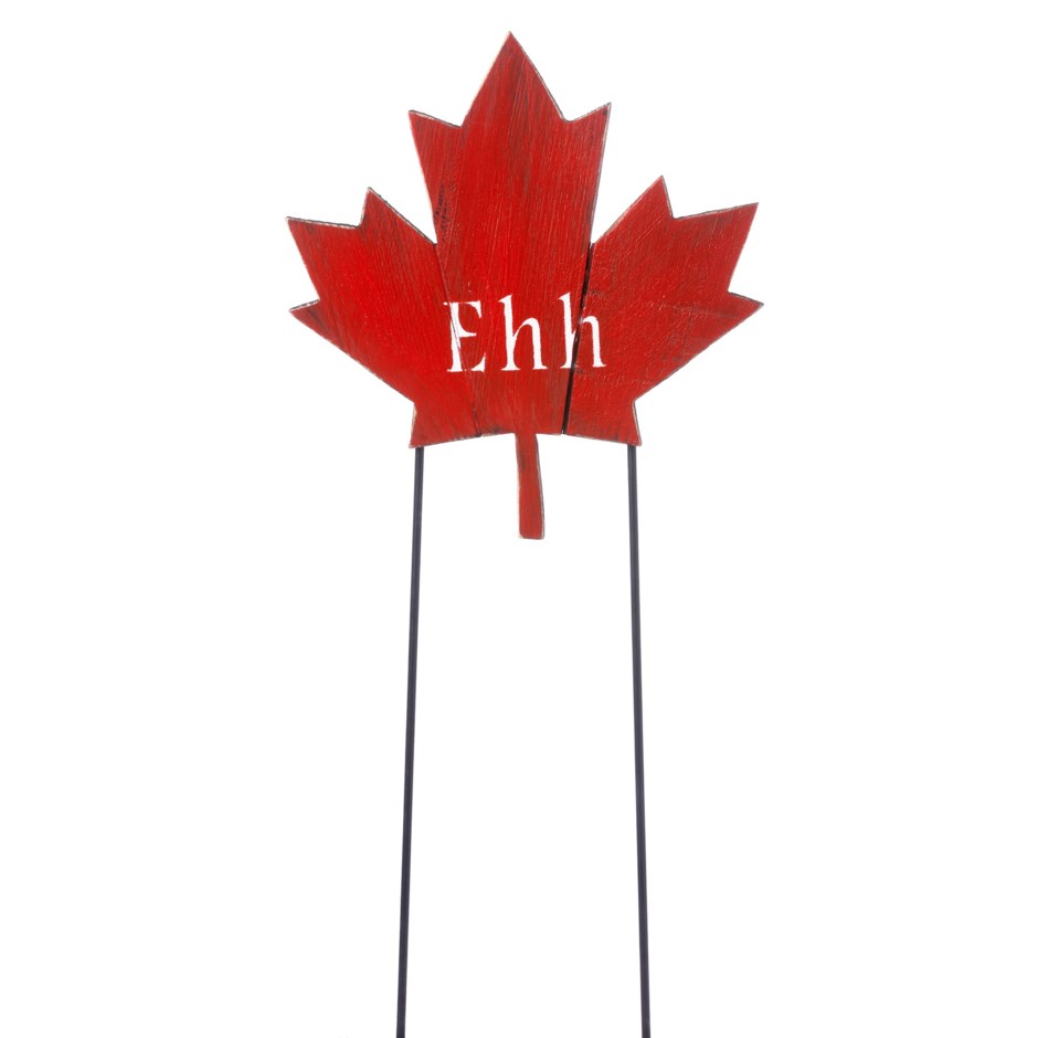 Wooden EHH Maple Leaf Stake 11.8 x 12.4" Red