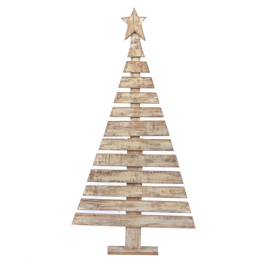 Wooden Tabletop Christmas Tree 49" Hand Painted White