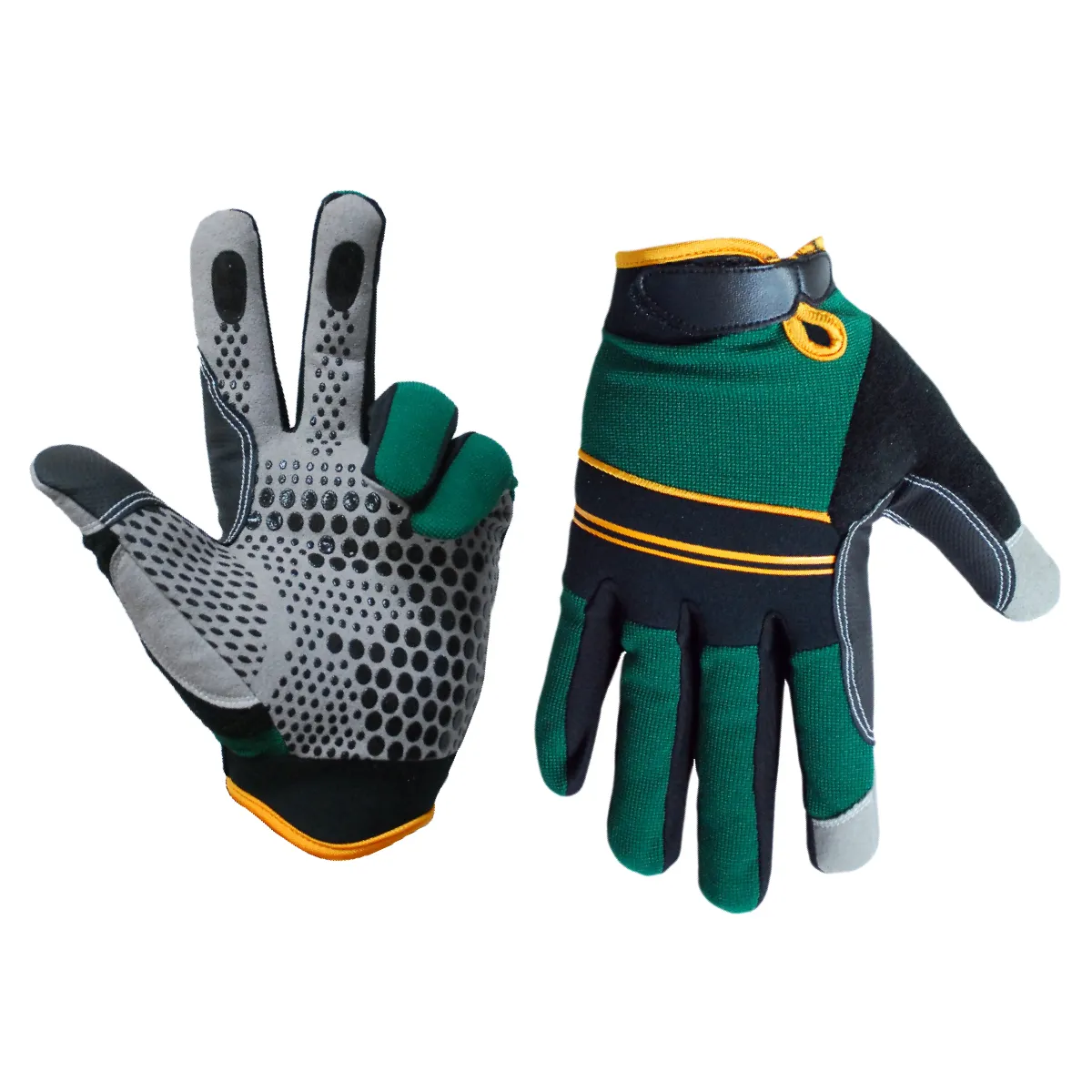 1 Pair Super Gripper; non slip Contractor Gloves Green/Black With Synthetic Leather Palm Gray(L)