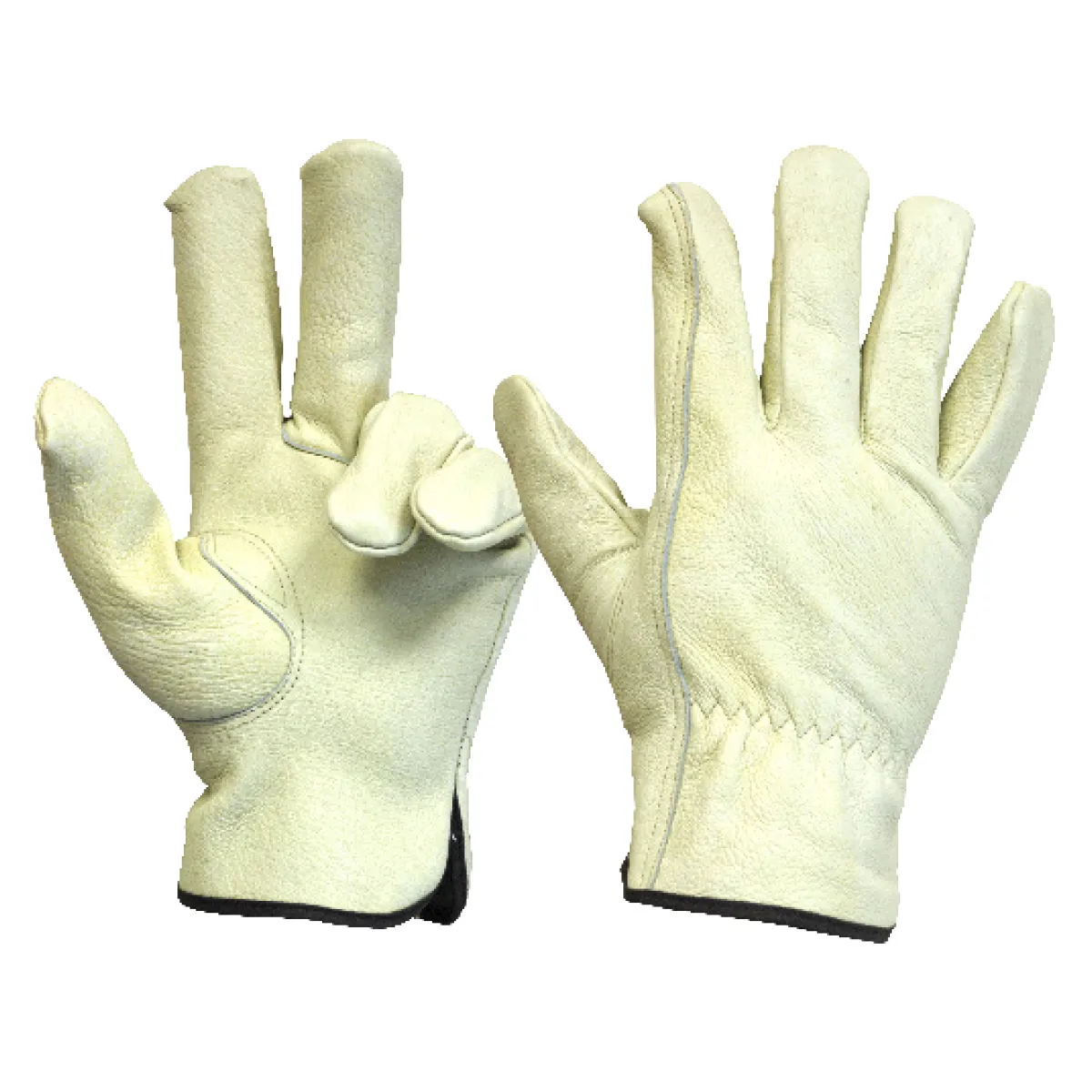 1 Pair Unlined Pigskin Driver Gloves Elastic Cuff Cotton Hem (L)