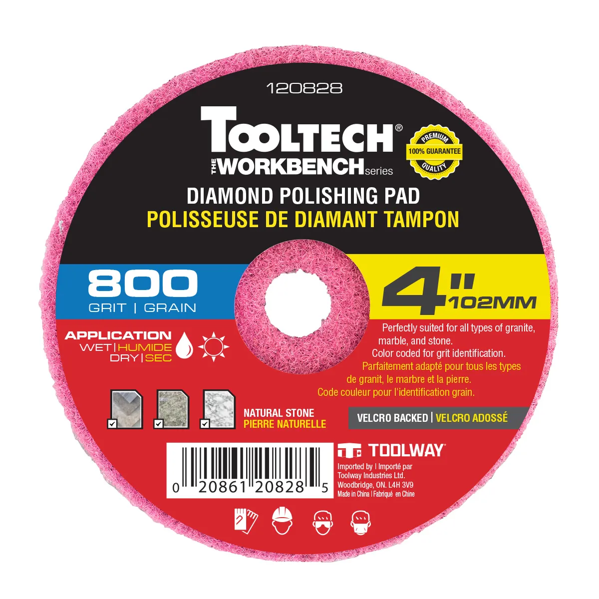 Diamond Polishing Pads from Toolway are the best choice for all your stone polishing needs. Can be used to create a superior shine on, Porcelain, Marble, Ceramic and Granite. Designed for wet or dry grinders and polishers these pads are also color coded for easy grit identification and are velcro backed for quick changing.