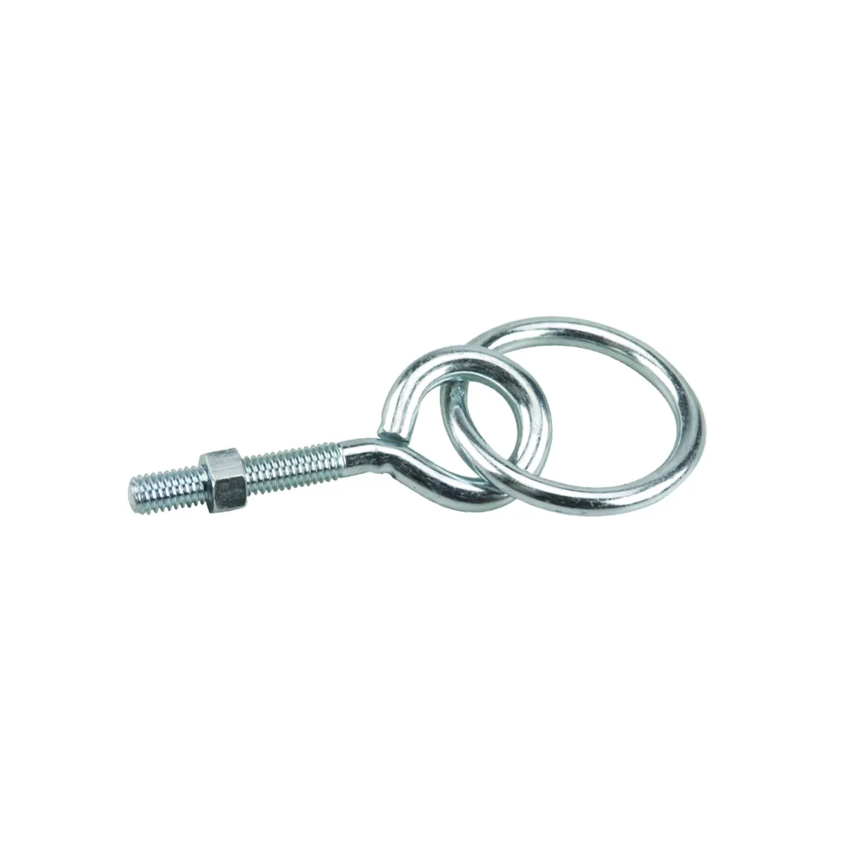 With nut. Zinc-plating provides corrosion resistance. For indoor or outdoor use. Ideal for general tie-down applications.