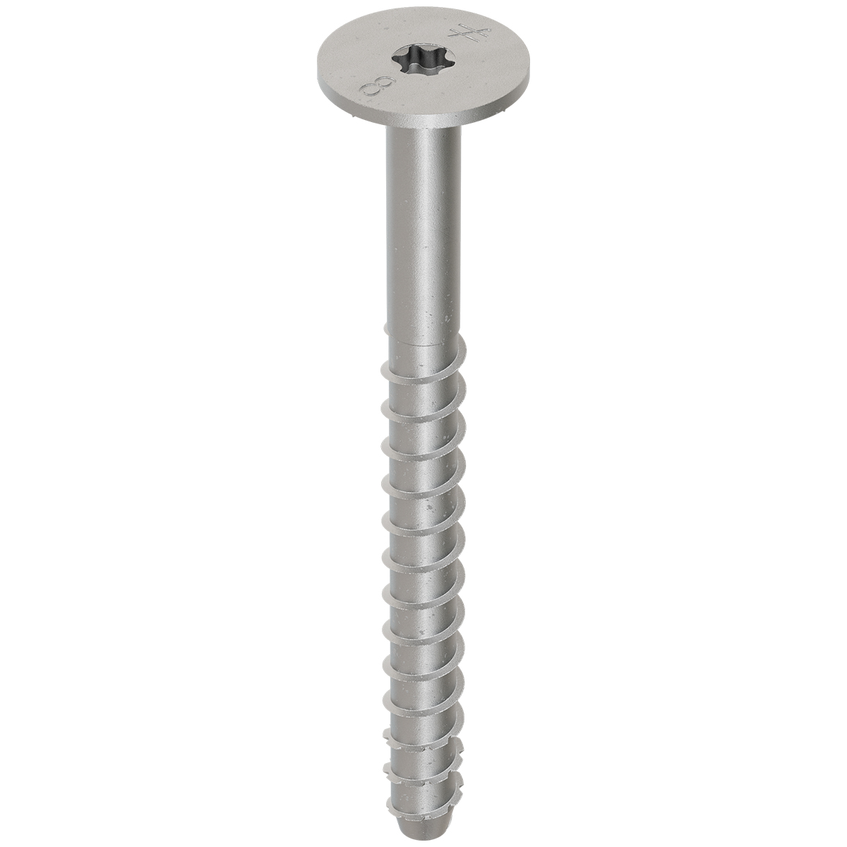 The Titen HD with washer head is a high-strength screw anchor for use in cracked and uncracked concrete; as well as masonry. The washer-head design is commonly used where a minimal head profile is necessary. The model is offered in sizes suitable for use in sill plate applications; and the washer head's low installed profile means modular wall and floor systems can be installed on top with no need for notching the wall framing to accommodate the anchor. The anchor's 6-lobe drive eases driving and is less prone to stripping.